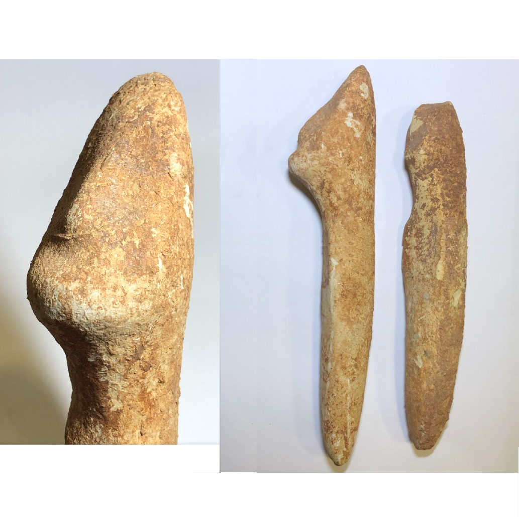 2 ראשים מאבן גיר. ממצא דומה נמצא במוצא (ליד ירושלים). התקופה הניאוליתית הקדומה