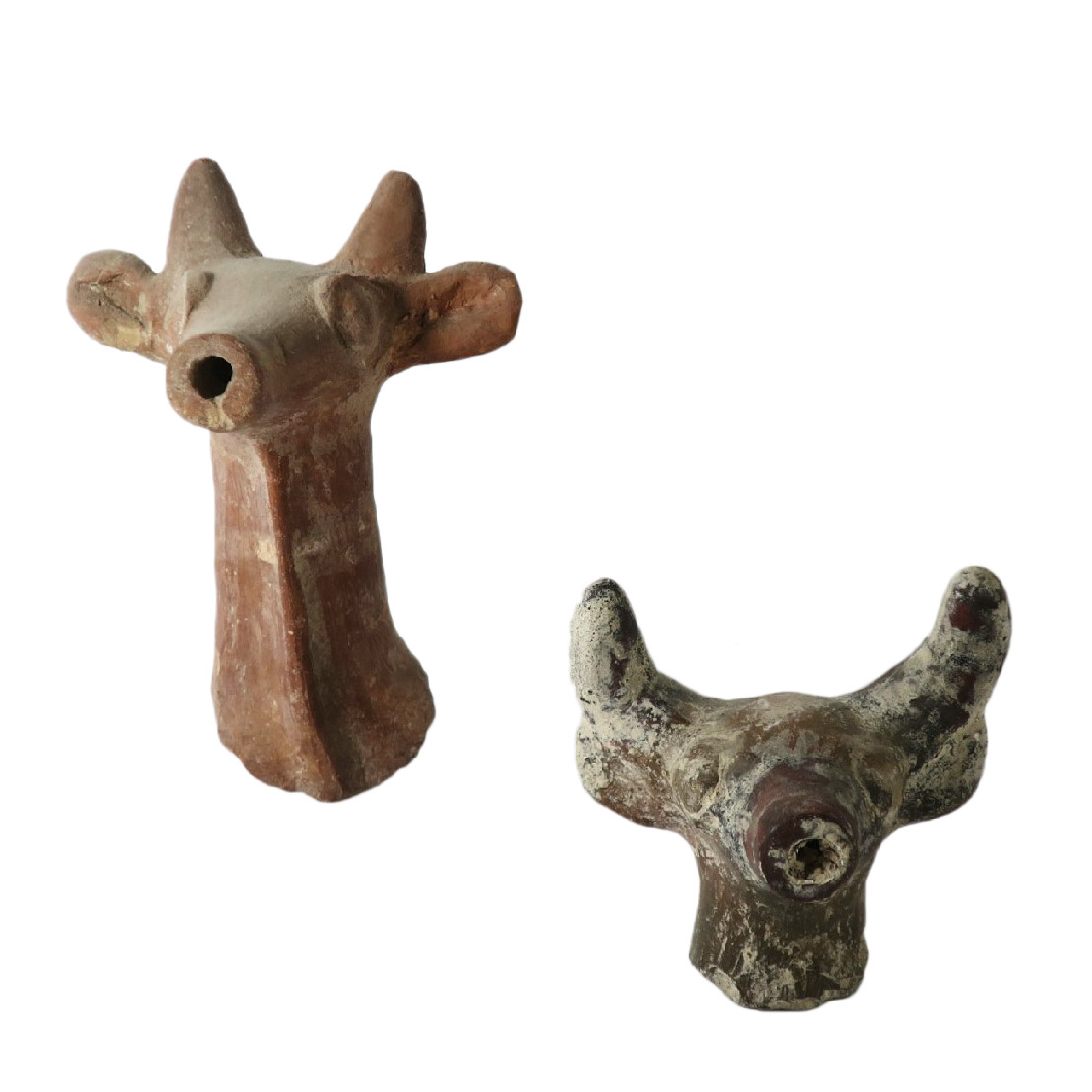 2 ראשי איילות, חלקים מקרנוסים, כנראה מתל אשדוד, תקופת הברזל 1