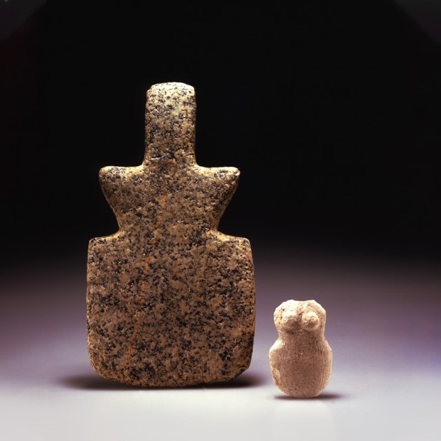 2 Violin-shaped figurines, stone. Gilat. Late Chalcolite