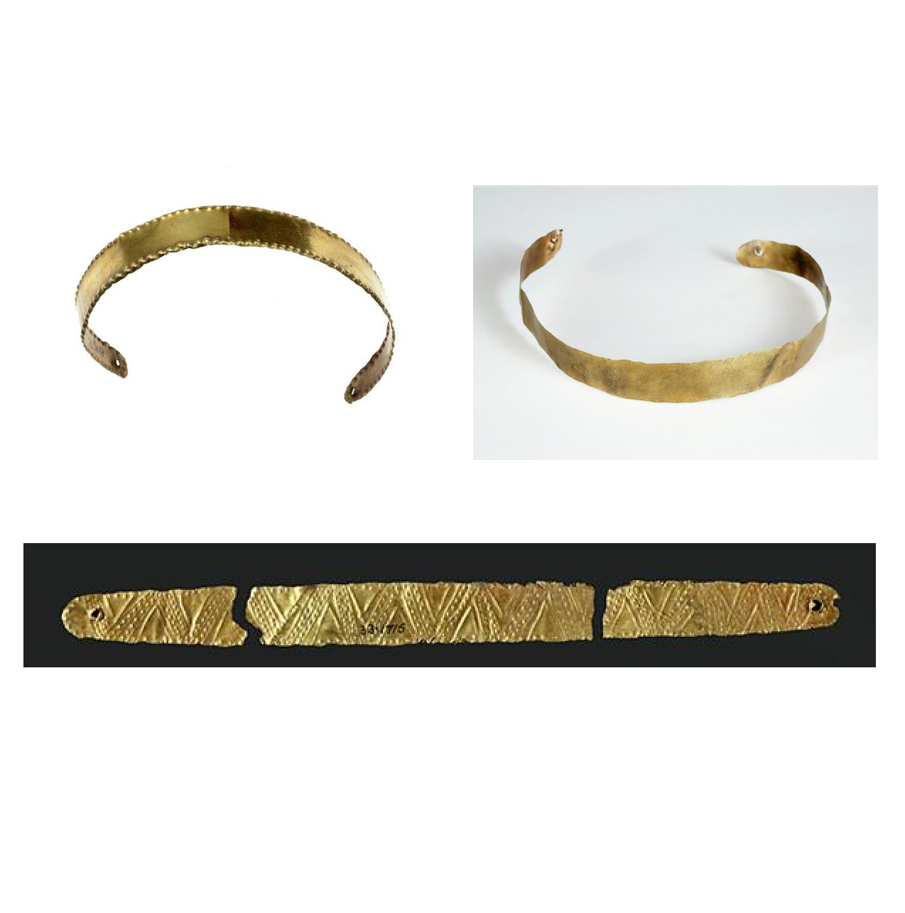 3 נזרים מזהב (Gold) (Gold) (לראש). תל אל עג'ול. תקופת הברונזה (Bronze) התיכונה 2