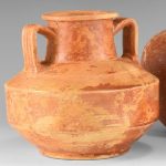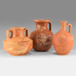 3 red pottery vessels: a jar and 2 jugs of the Terra sigillata type. Originally from the northeastern Mediterranean (Syria or Cyprus or Turkey). Early Roman period