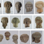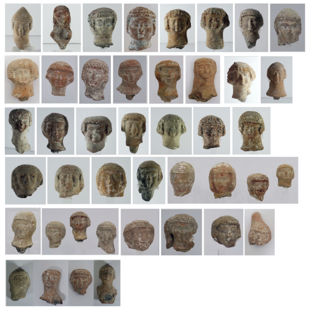 43 ראשי צלמיות עמוד (ראשי “צלמית עשתורת”) שנוצרו ביציקה ונשברו במכוון בימי קדם. ארץ יהודה. תקופת הברזל 2