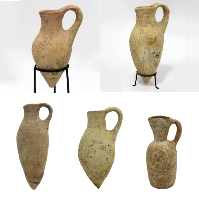 5 פכיות עם שפה מחודדת. ל-4 מהן בסיס “קונוס” (“שפיץ”), תקופת הברונזה (Bronze) המאוחרת