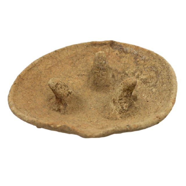 A 3 legged plate, designated to hold an oil lamp, Iron Age I.