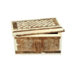 קופסת תכשיטים, מעוטרת בלוחיות שנהב/עצם, עם ראש אשה בתסרוקת חתחור, עם מכסה, תל חצור, תקופת הברונזה המאוחרת