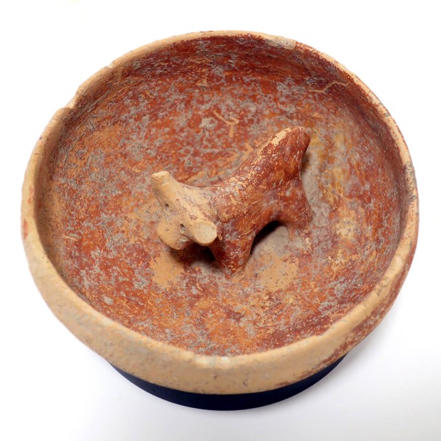 קערה עם פר. טיפוס תל-אל-פרעה צפון. [כלי זואומורפי].תקופת הברונזה הקדומה 1