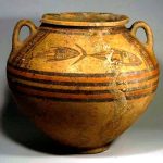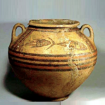 קדרה, מעוטרת בסגנון בי-כרומו, עם דגים. יבוא קדום מקפריסין. דותן. תקופת הברונזה המאוחרת