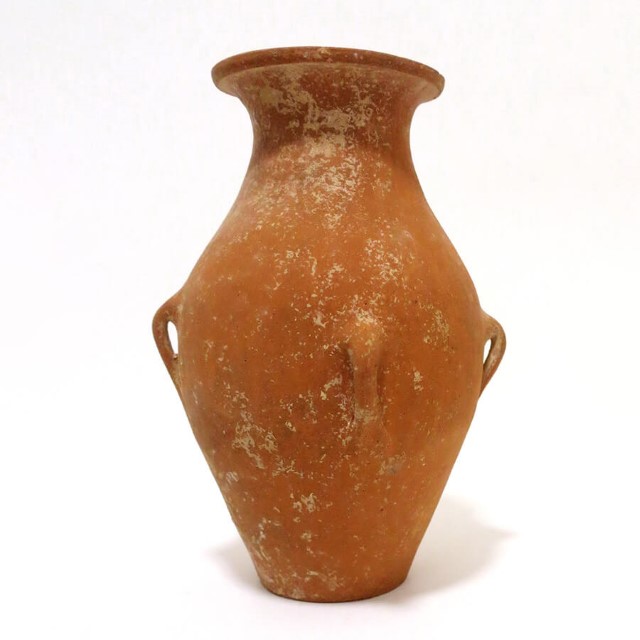 A jar with 4 handles. Red-orange burnished slip. Early Bronze Age 2