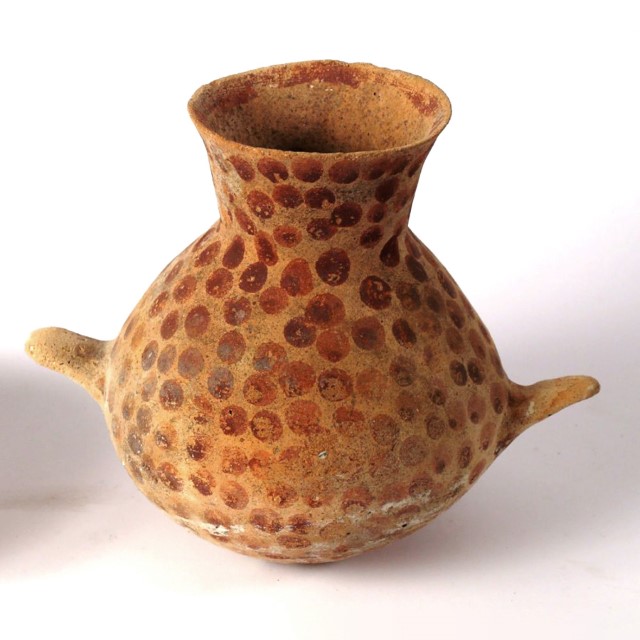 A jar with ledge-handles. Decorated in “dots”. Early Bronze Age 1