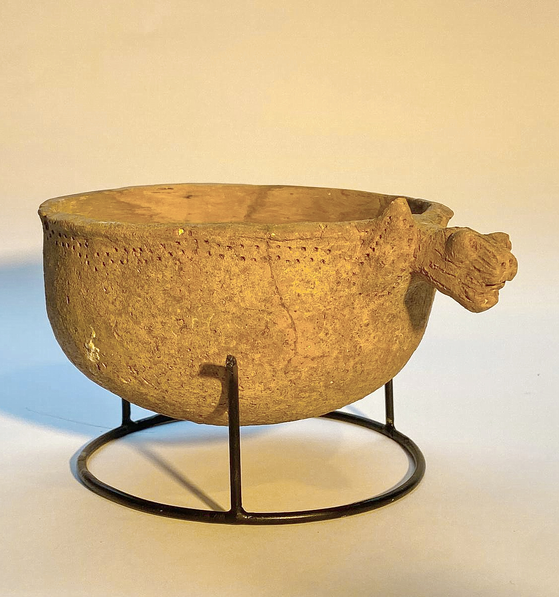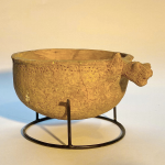 קערית עם "ידית" בצורת ראש אריה עם דיקור סביב שפת הכלי. תקופת הברזל 1