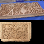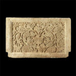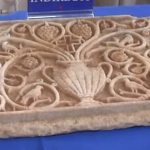 A magnificent stone chancel screen (slab), probably from a synagogue. With a Menorah “disguised” as an amphora, with grape clusters. Late Roman period or early Byzantine period