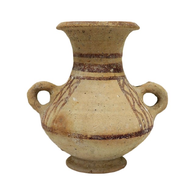 קנקנית מחופה לבן מעוטר בפסים בגוון חום, תקופת הברונזה המאוחרת