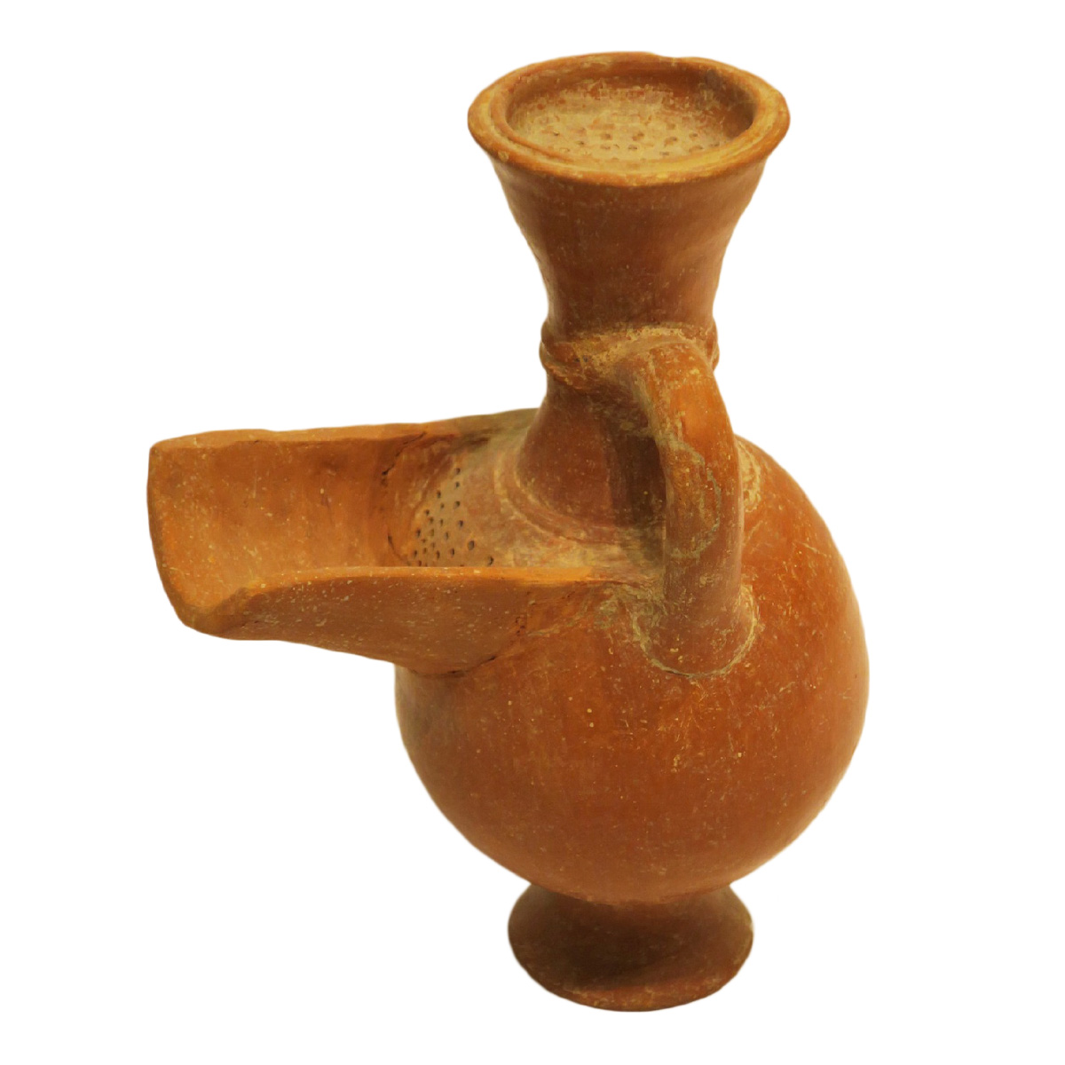 A pedestalled spouted jug with an upper strainer. Iron Age I.