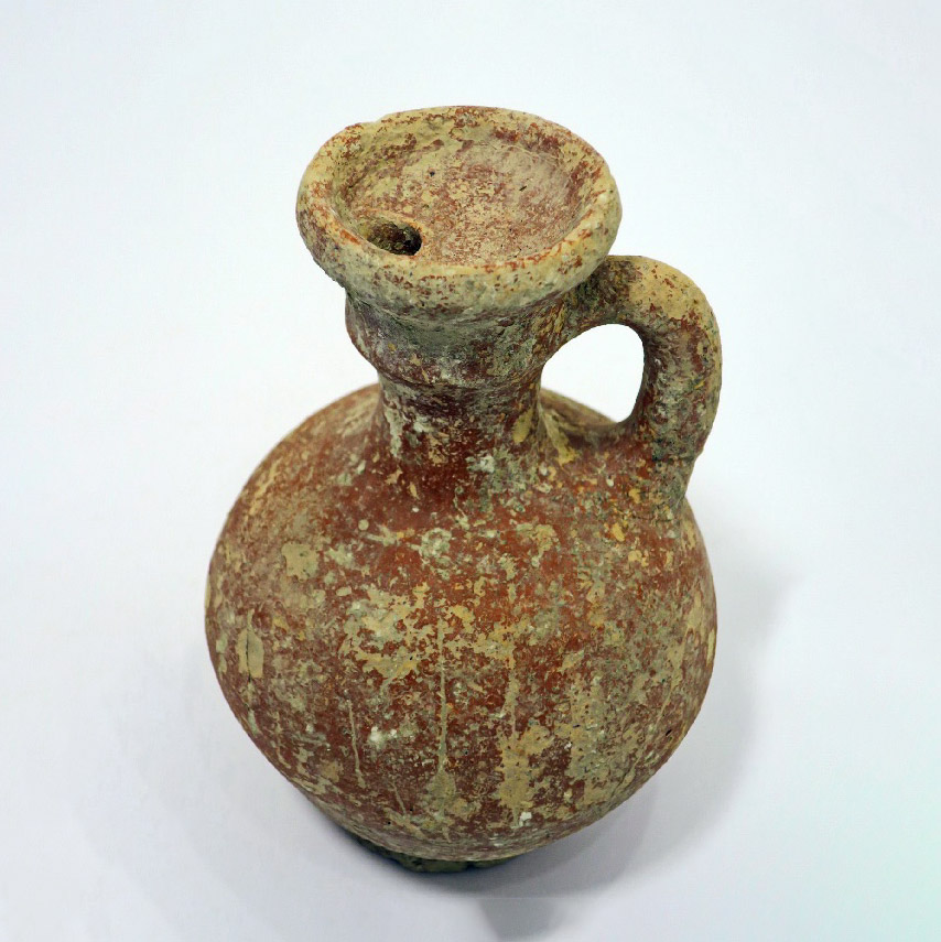 A red jug. Most of its upper part was closed. Iron Age 2