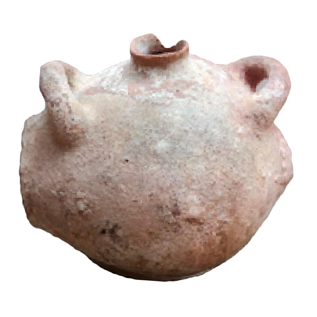 A small churn (or jar), with oval-body and 2 upright handles on the top. Similar items were found in Jericho, Azor and in the eastern Delta in Egypt. 3200-2950 BCE. Late Chalcolithic or Early Bronze I.