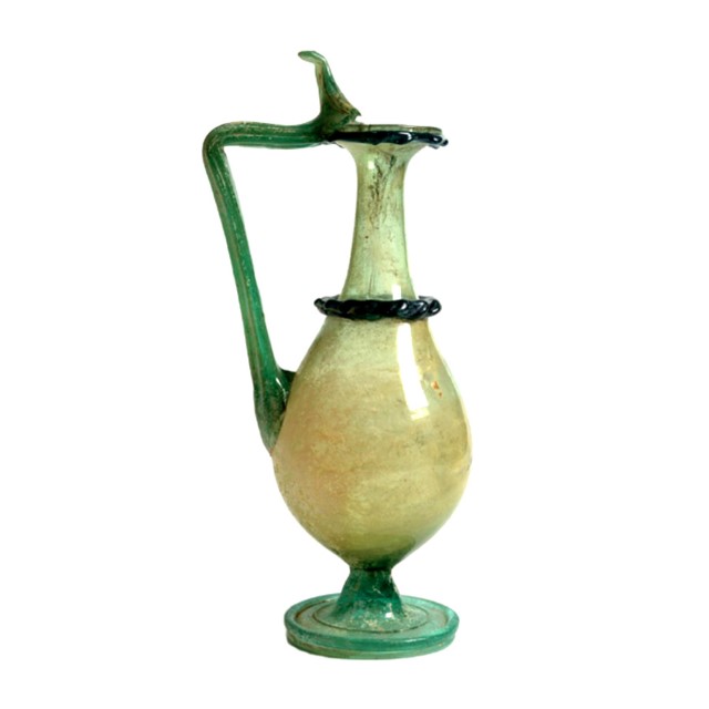 A tall elegant glass jug. Formerly in the Teddy Kollek collection. The Byzantine period