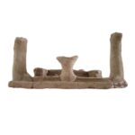 A temple model. 2 pillars and a lamp (menorah), door hinges and an inner sanctum room with a temple table. Iron Age II (9th-10th centuries BC).