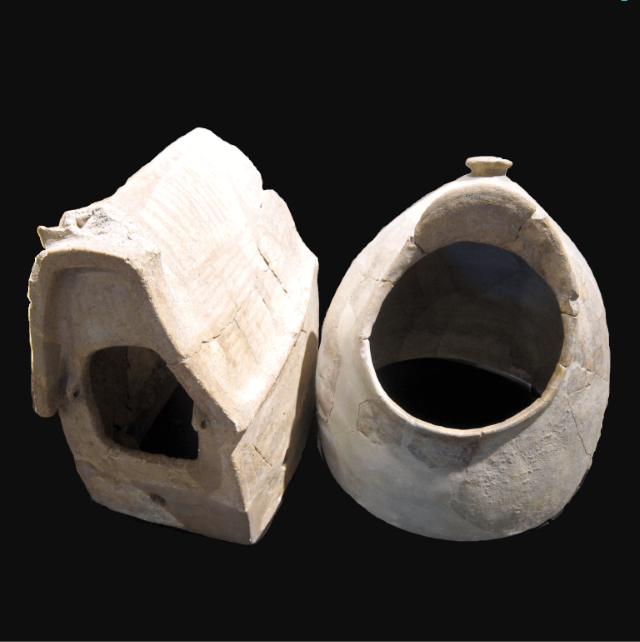 An ossuary in the shape of a house and and an ossuary in the shape of a granary structure. The late Chalcolithic period
