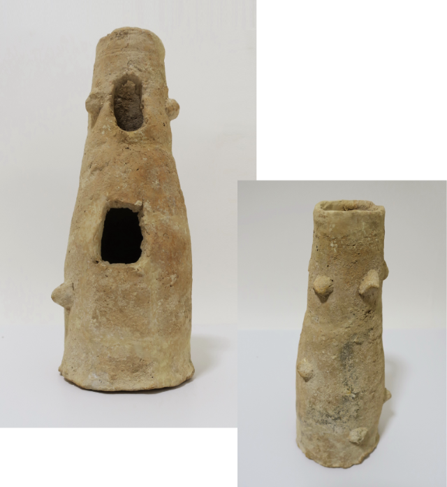 2 כלים דמויי מגדל איסום (לאגירת תבואה). סגנון כלי טייבה. התקופה הכלקוליתית המאוחרת