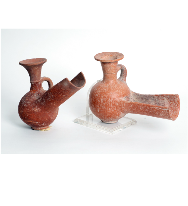 2 פכי סינון ("ביר ג'ג), עם "משפך" ארוך, מחופות אדום, תקופת הברזל 2