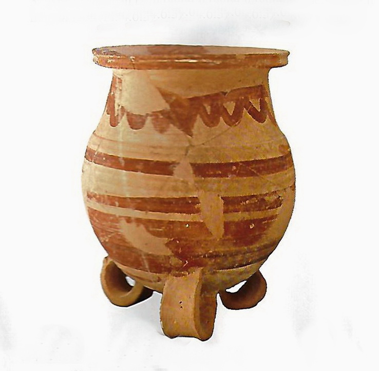 Decorated cup, sitted on 3 handles. The Upper City (Jewish Quarter, Jerusalem). Early Roman period