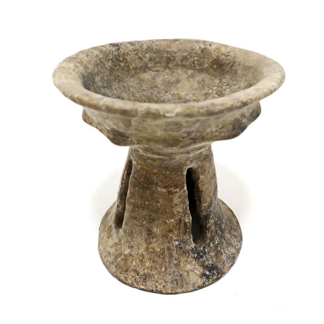 Fenestrated-pedestalled bowl. Grey burnished. Early Bronze Age 1