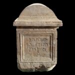 The façade of the sarcophagus is decorated with a wreath and two reliefs of “carrying handles” (which were characteristic of wooden coffins and were originally made of bronze).
