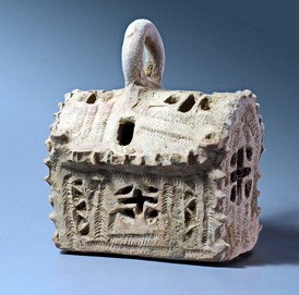 Terracotta lantern in the shape of a building, with crosses. Ashkelon area. Byzantine period