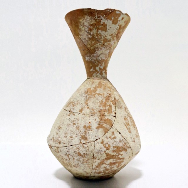 Triple conic jar, “cream ware” with a small strainer (on top). Late Chalcolithic