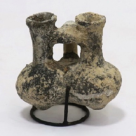 פכית “תאומים” שחורה המורכבת מ-2 פכיות שחורות המחוברות בידית מאחור. תקופת הברזל 2