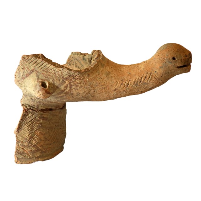 כלי חרס פולחני מחרס עם ראש בעל חיים (כלי זואומורפי), התקופה הכלקוליתית