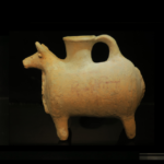 Zoomorphic vessel in the shape of a bull. Decorated by painting of animals on its surface. Late Bronze Age