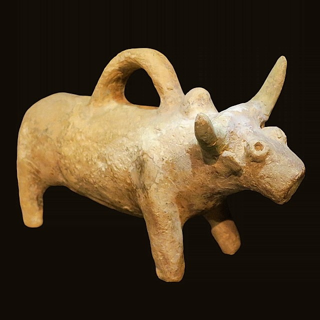 Zoomorphic vessel in the shape of a bull. Imitation of Cypriot zoomorphic vessels. Late Bronze Age